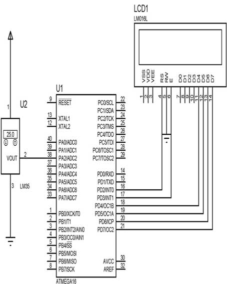 $regfile = "m16def.dat" $crystal = 1000000 Config Lcdpin = Pin , Db4 = Portd.4 , Db5 = Portd.5 , Db6 = Portd.6 , _ Db7 = Portd.7 , E = Portd.3 , Rs = Portd.2 Config Lcd = 16 * 2 Dim T As Word Config Adc = Single , Prescaler = Auto , Reference = Internal Start Adc Do T = Getadc(2) T = T / 4 Cls Cursor Off Lcd "TEMP = " ; T Waitms 500 Loop دانلود پروتئوس و بسکام پروژه دماسنج ساده