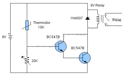 با این مدار می توانیم با افزایش حرارت ، مدار را طوری تنظیم نماییم که رله بکار افتد و در خروجی مدار دیگری را قطع یا وصل نماید .